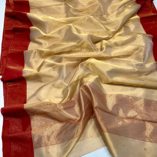 Traditional Chanderi Handloom Zari Tissue Silk Saree