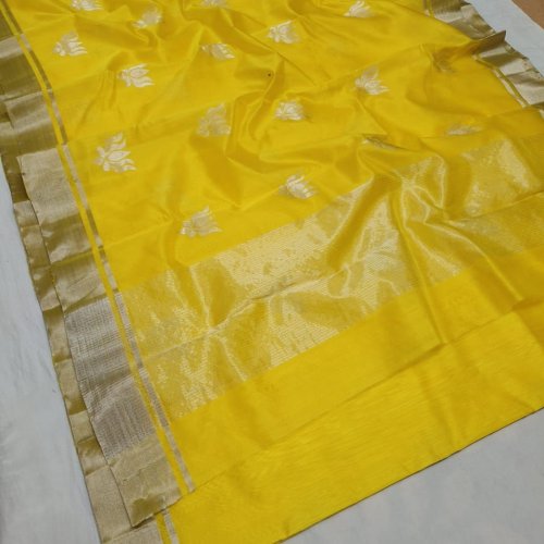 Yellow Chanderi Handloom Pattu Soft Silk Saree