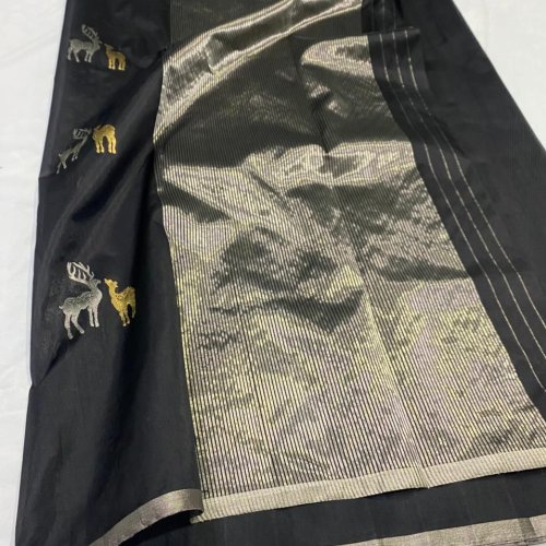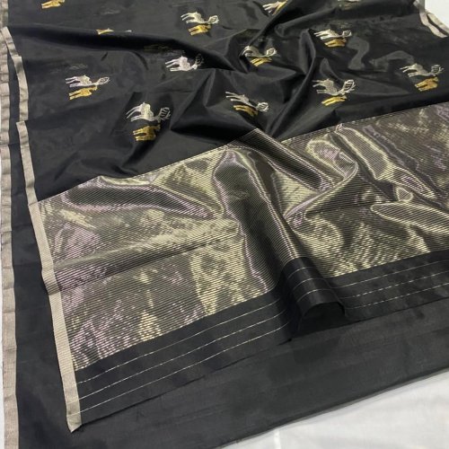 Silver Zari Pallu Meenakari Boota Pattu Soft Silk Saree