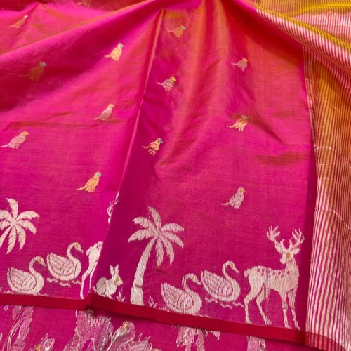 Handloom Meena Kari Work Full Boota Pattu Soft Silk Saree