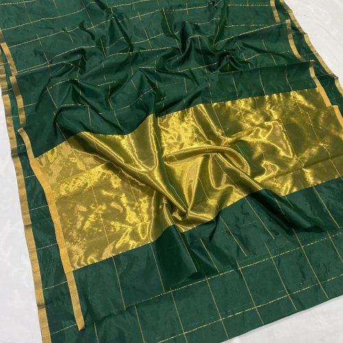 Pure Chanderi Handloom Gold Zari Border Pattu Soft Silk Saree