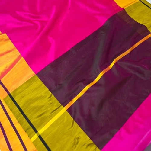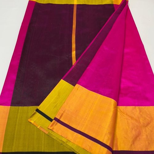 Pure Chanderi Mashroom Border Raw Mango Pattu Soft Silk Sarees
