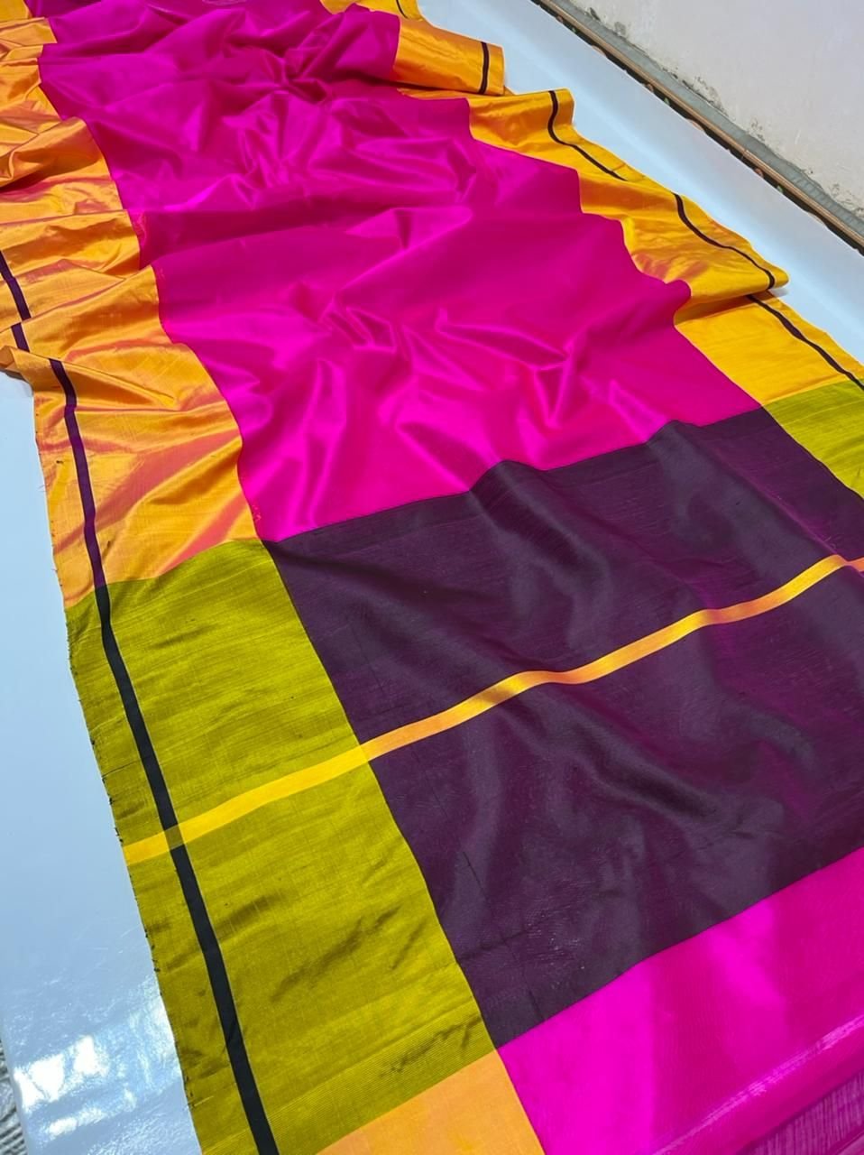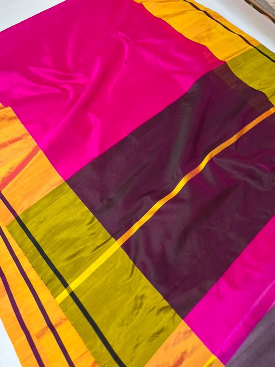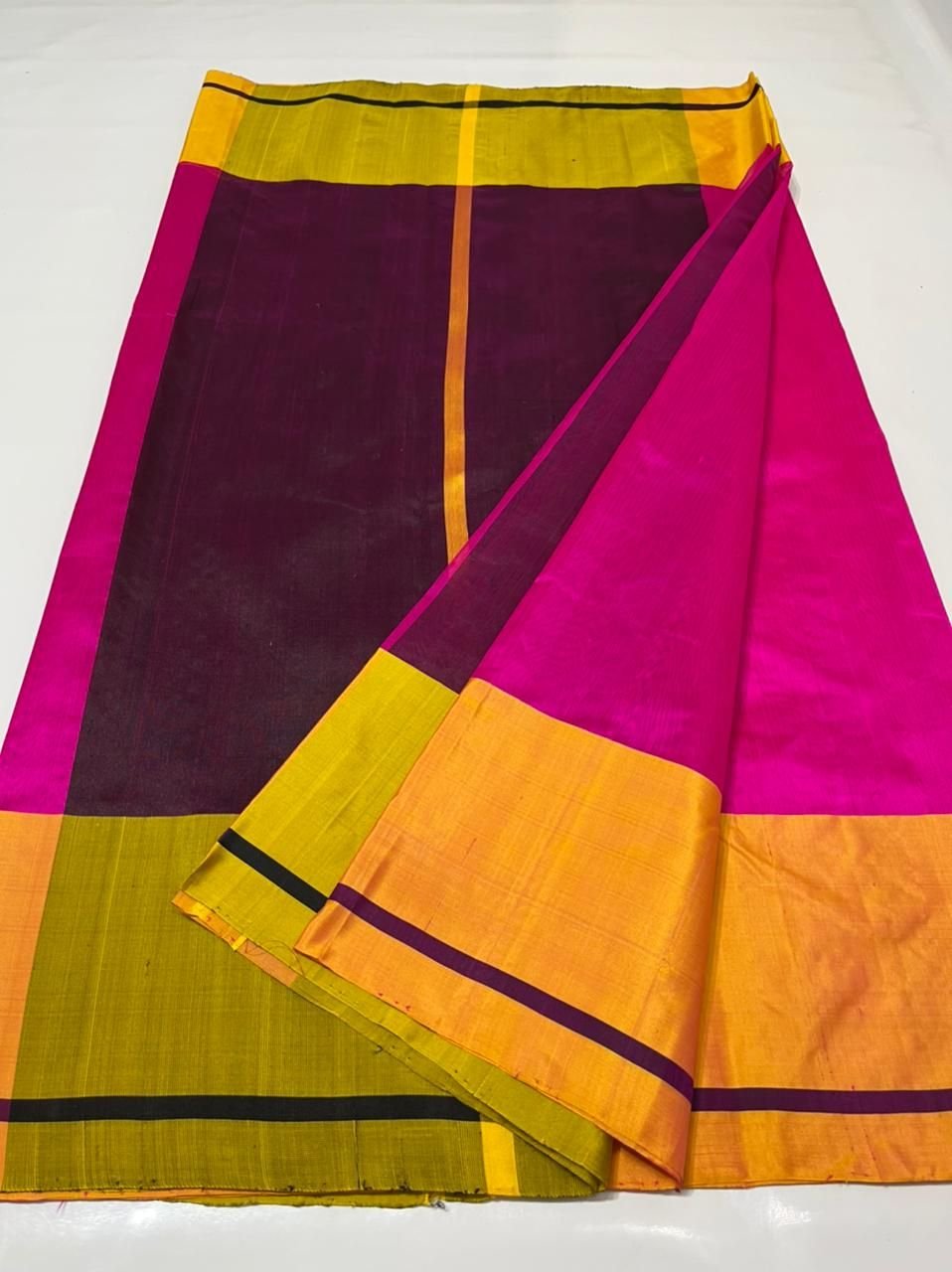Home › Products › Pattu Soft Silk Sarees › Pure Chanderi Mashroom Border Raw Mango Pattu Soft Silk Sarees